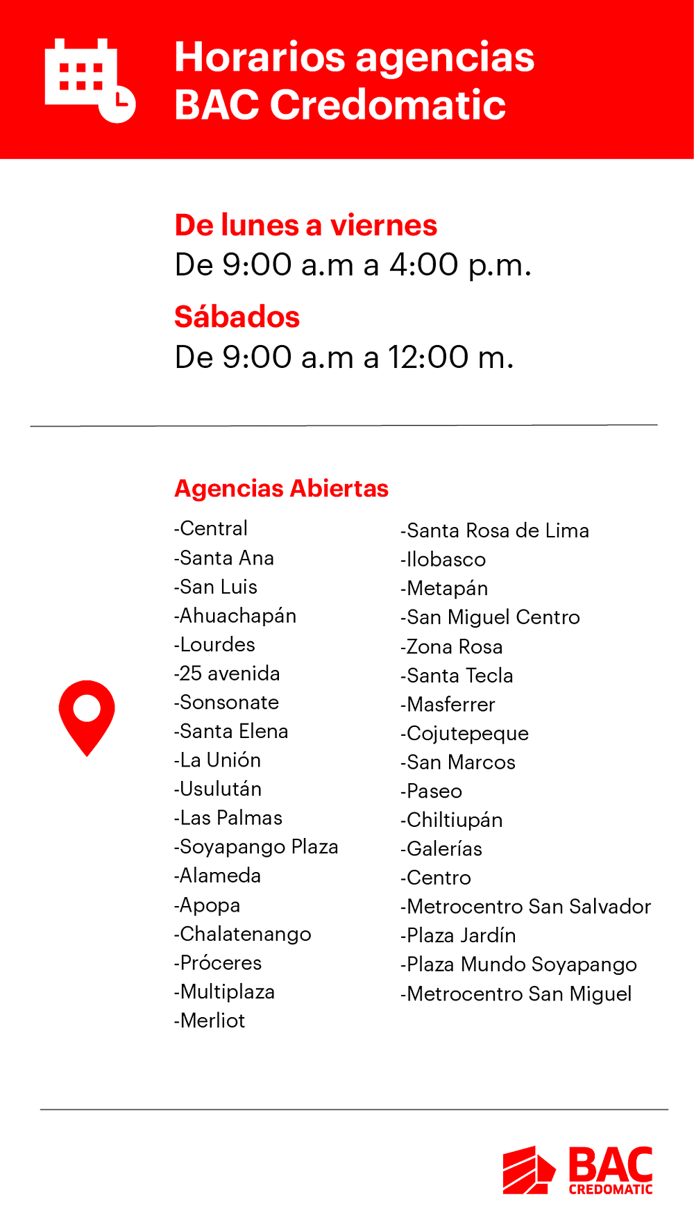 Horarios en nuestras agencias