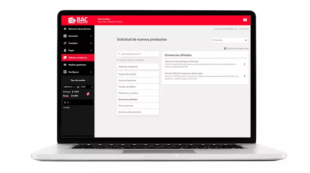 Selecciona la categoría Comercios afiliados dentro de Banca Móvil